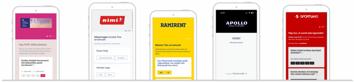 Kliendikogemuse küsitluste keele või keeled sisestame vastavalt Teie soovidele: EST, LAT, LIT, FIN, ENG, RUS, SWE, … jne. Kui Teie klient sisestab valikud ja kommentaarid näiteks soome või rootsi keeles, siis Teie saate tulemusi vaadata eesti keeles (või vastupidi).